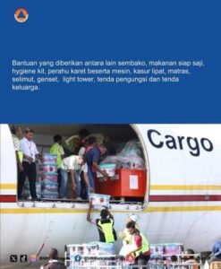 Adapun bantuan dimaksud, tenda Pengungsi 6×12 m sejumlah 2 unit, Tenda keluarga 4×4 jumlah 50 unit, Genset jumlah 2 unit, Perahu karet plus mesin jumlah 1 uni, Kasur lipat jumlah 50 lembar dan Matras sebanyak 200 lembar.