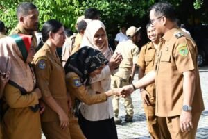 Jelang akhir tugas, Hasanusi memimpin apel akbar bersama Aparatur Sipil Negara (ASN) lingkup Pemkot Tual yang berlangsung di halaman Balaikota Tual, Senin (17/2/2025).