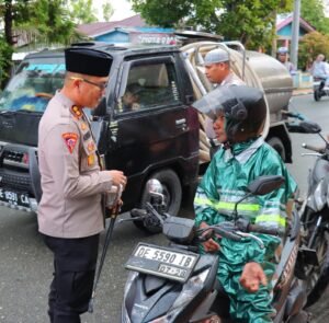 Pembagian takjil oleh personil Polres Tual dan Media di seputaran Kota Tual, khususnya pada arena dekat Tugu Tete Pancing, Kota Tual, Kamis (13/3/2025)