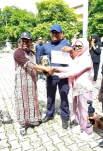 Kepala Dinas Pemadam Kebakaran Kota Tual Jamal Renhoat meraih juara satu lomba kukur kelapa dengan hadiah piala dan sertifikat. (Foto: istimewa)