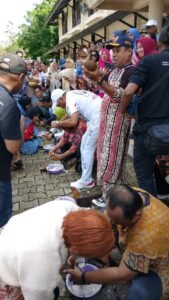 Terlihat sejumlah kepala dinas/badan lingkup Pemkot Tual ikut meramaikan lomba kukur kelapa. (Foto: istimewa)