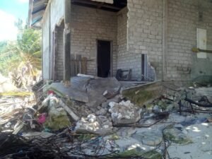 Tualterkini.com.- Rumah warga Finua (Desa) Hirit di Kecamatan Kur Selatan Kota Tual rusak akibat hantaman abrasi pantai. Melalui unggahan  pada media sosial Facebook memperlihatkan salah satu fondasi teras depan rumah warga mengalami kerusakan parah.