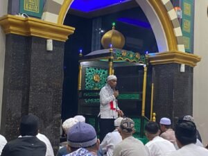 Tualterkini.com.- Malam ke-4 Bulan Suci Ramadhan 1447 H, Wakil Wali Kota Tual H. Amir Rumra S.Pi M.Si hadir dan memberikan tausiyah inspiratif di Masjid Az-Zahra Mahkota, Kecamatan Dullah Selatan pada Sabtu 21/02/2026.