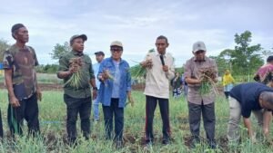 Dalam melaksanakan panen raya bawang merah sekaligus menyerahkan bantuan sarana produksi pertanian kepada kelompok tani, Jumat 24 April 2026.